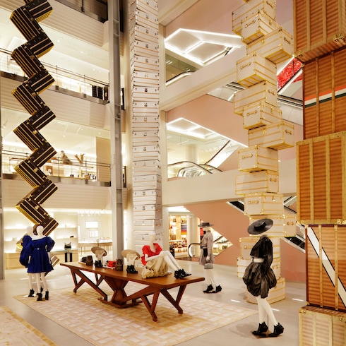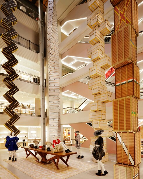 Step into a soaring atrium featuring a breathtaking 16-meter installation of iconic trunks, blending Louis Vuitton’s heritage with NYC’s skyline, designed by Shohei Shigematsu, partner of globally renowned architectural firm OMA. The new destination invites visitors to embark on an immersive journey across five floors.