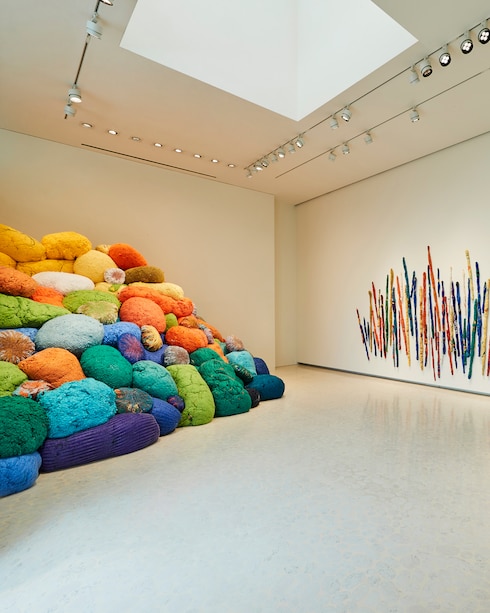 Breaking down the barriers between fine arts and applied arts, artist Sheila Hicks seamlessly blends modernism, abstraction, extra-western traditions and savoir-faire in her hand-woven works, soft sculptures, and monumental installations. Using sculptures and environments composed of wool, nylon, silk, linen or cotton, Hicks creates inviting atmospheres where visitors can wander. Discover three of the artist's iconic pieces, “Atterrissage“ (2014), “Bâtons de Parole” (2016) and “Another Break in the Wall“ (2016), presented for the first time in Korea.