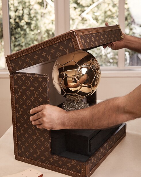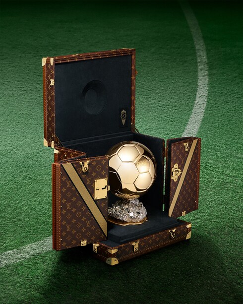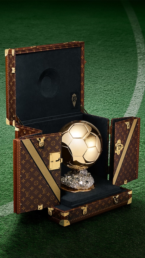 As the Official Trophy Trunk Partner of the Ballon d’Or™, Louis Vuitton presents two custom-made creations, designed to hold the prestigious Women’s and Men’s football player awards in – showcased on stage during the 69th ceremony on September 22nd, 2025. Embodying the Maison's iconic codes, each trunk is finished in Monogram canvas and features a golden V motif – symbolizing “Victory” and “Vuitton“, while matching the splendor of the Ballon d’Or™ itself.