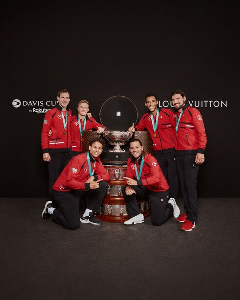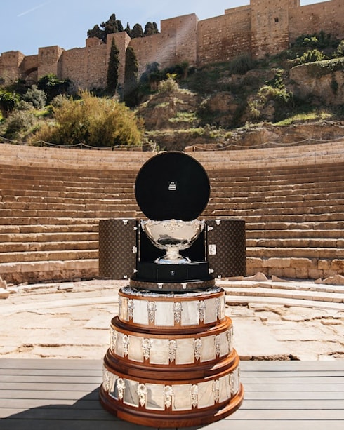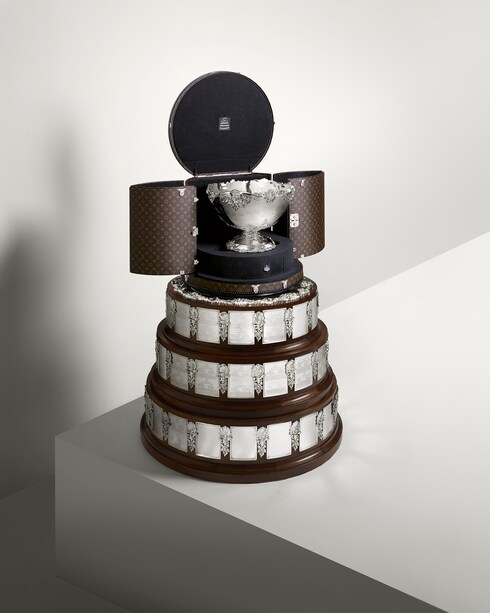 In 2022, the Davis Cup trophy was presented in a bespoke Louis Vuitton Trophy Travel Case, marking the third year of the Maison’s collaboration with the prestigious tournament. Covered in the iconic Monogram Macassar canvas, the unique circular trunk sits atop the cup’s remarkable oversized base, opening at the top and on two sides to create a perfect showcase.
