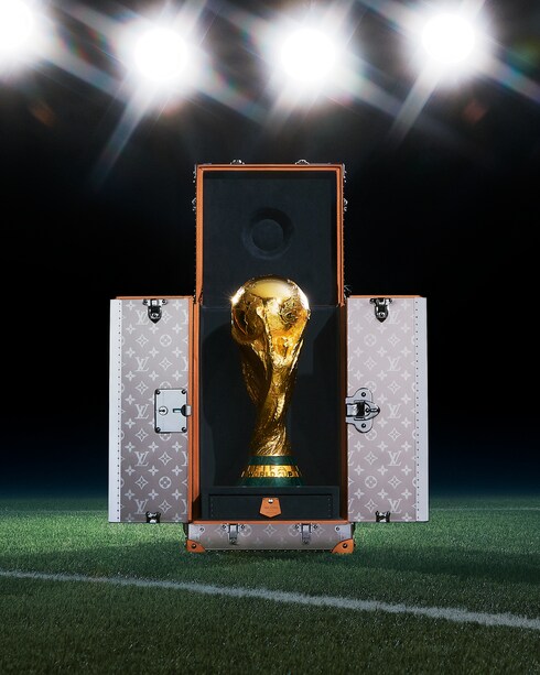 As part of its partnership with one of the world's greatest sporting events, Louis Vuitton has specially designed trophy trunks for the 2010, 2014, 2018 and 2022 FIFA World Cups™. The Trophy Trunk has been carefully crafted to protect the sought-after trophy’s 6.175 kilograms of 18-carat gold and malachite. A gracious and intelligent means of transporting and displaying football’s greatest prize, this elegant case continues Louis Vuitton’s 160-year association with legends: from royalty, writers, explorers to the most recognizable trophy in the world.