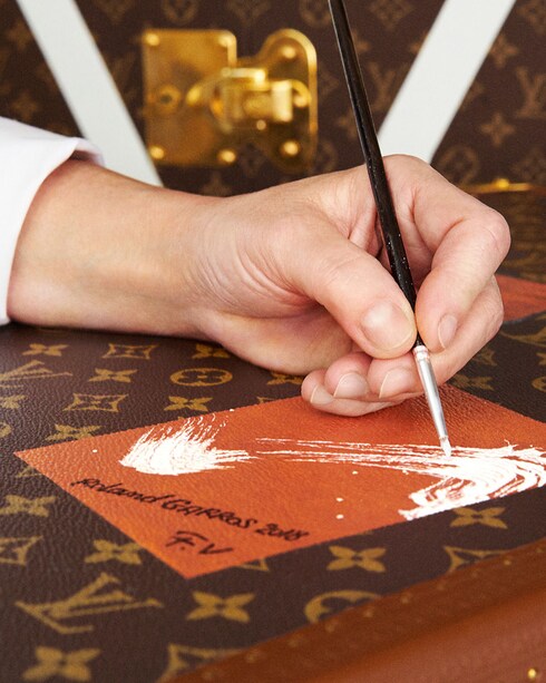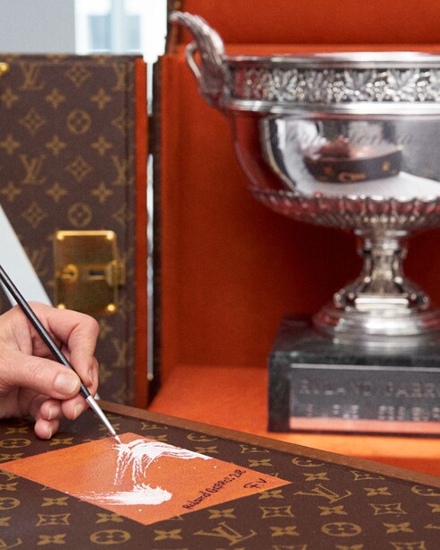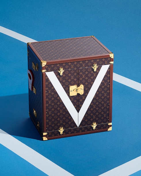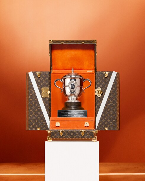 Louis Vuitton joined forces with the French Tennis Federation for the 2017 and 2018 editions of Roland Garros. The trophies were presented in their trunks before the kick-off finals match for both the Women’s Singles and Men’s Singles, and along court-side. The collaboration results in trunks adorned with the iconic Monogram canvas and a terracotta-colored interior evocative of clay, while a 'V' reminiscent of the lines on a tennis court adds the finishing touch.