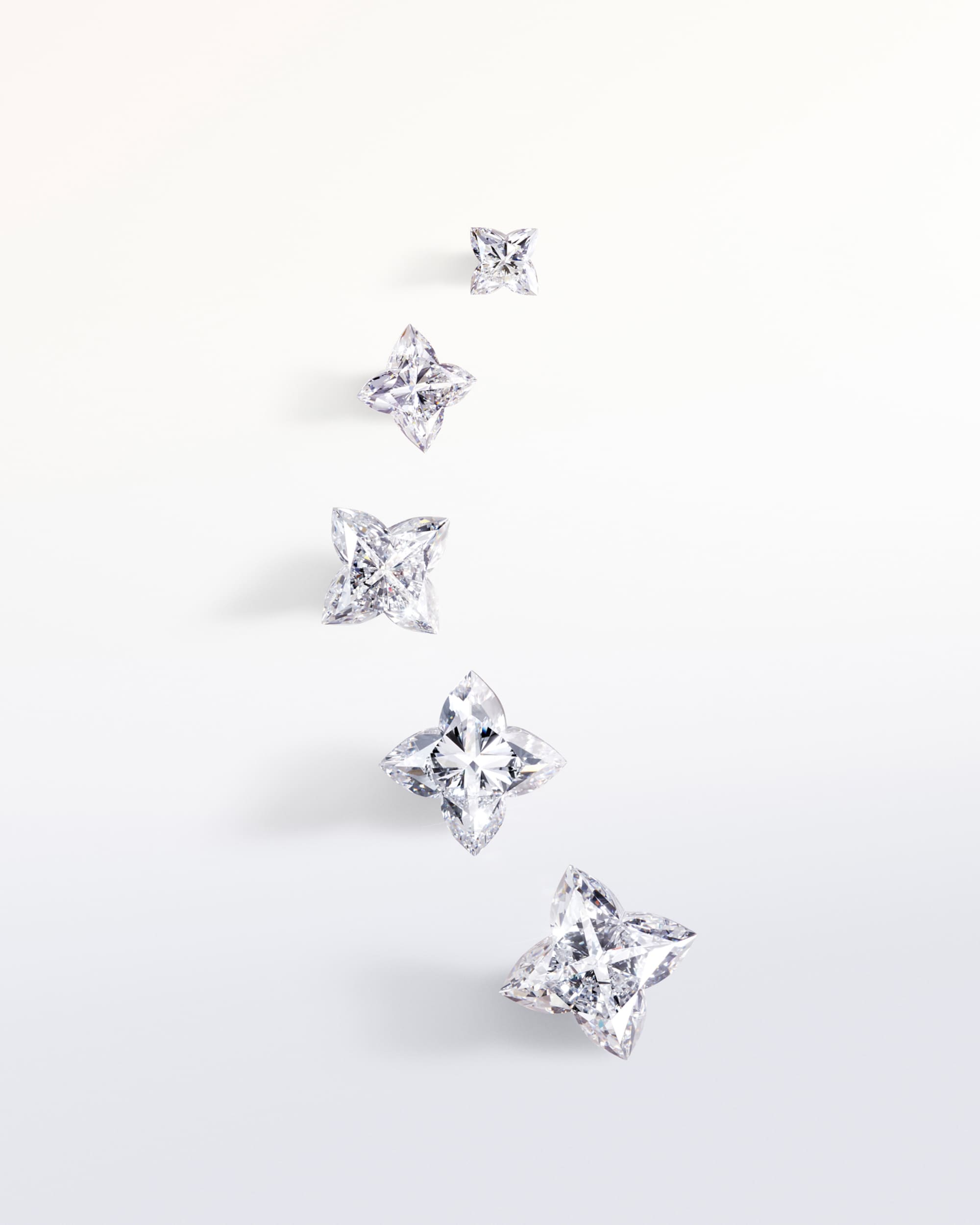 The carat size of a diamond corresponds to its weight, with 1 carat equivalent to 0.2 grams. Louis Vuitton selects diamonds from a wide range of carat weights so that each stone can be meticulously chosen according to the design.