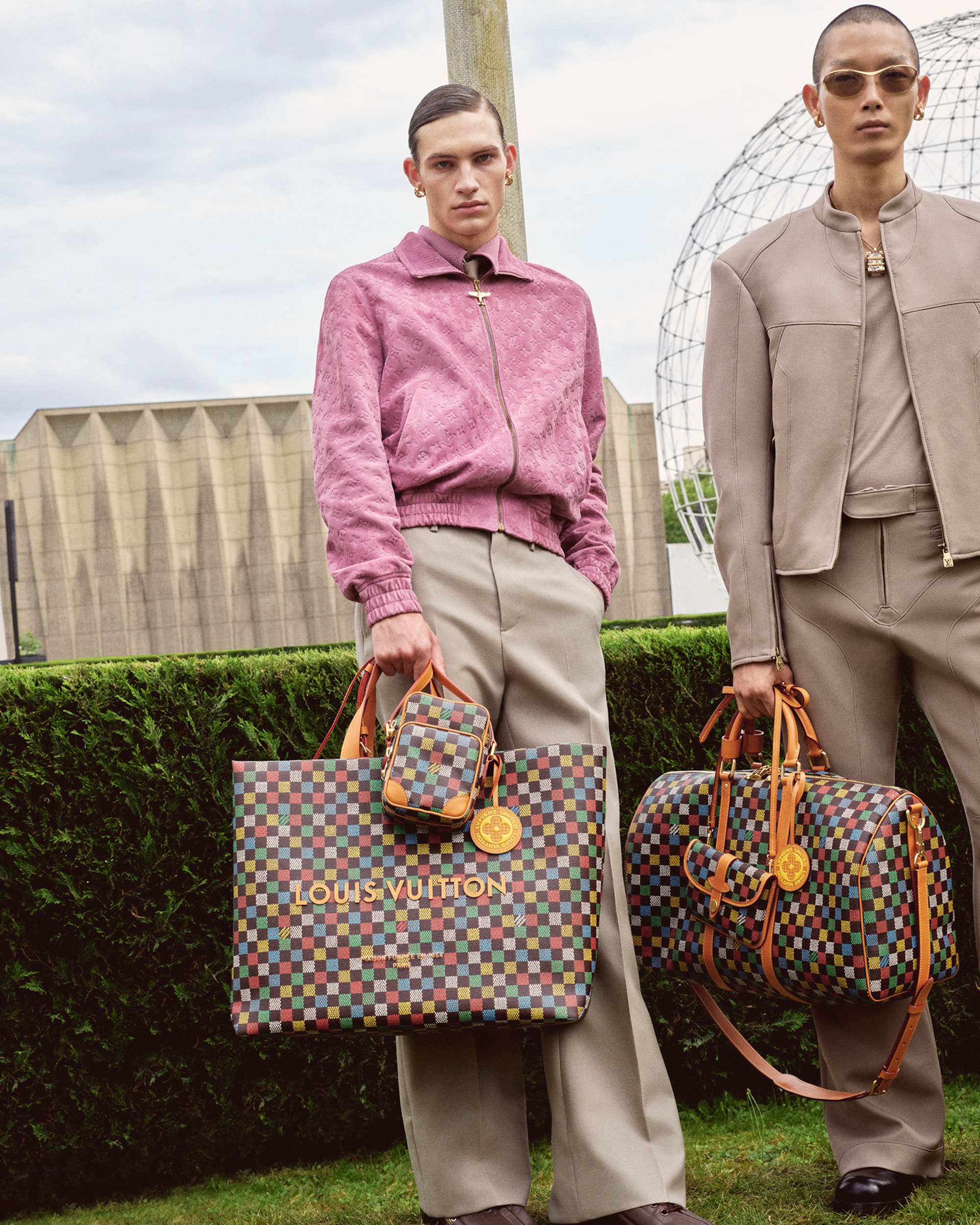 Pharrell Williams' signature dandy aesthetic is imbued with archetypal codes of travel, capturing the Maison's global mentality through distinct silhouettes. A reflection of human diversity, emblematic motifs morph into dynamic configurations — adorning iconic bags and accessories.