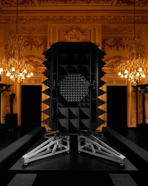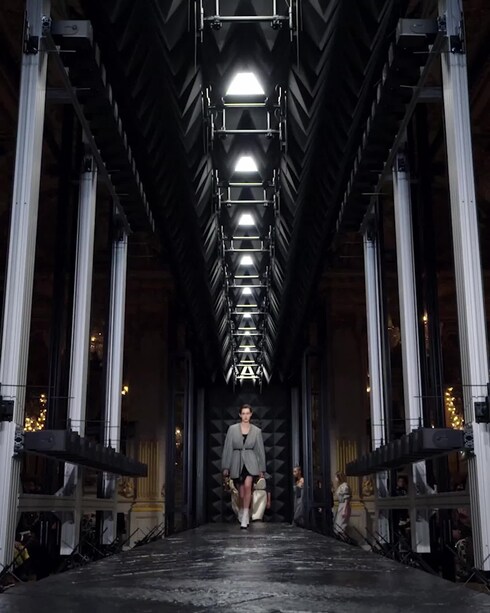 The Fall-Winter 2023 Collection was presented in the Musée d’Orsay. Nicolas Ghesquière collaborated with leading French artist Philippe Parreno and sound designer Nicolas Becker to imagine an immersive set. Featuring geometric lines, a Parisian street, and a curated sound experience, the design brought Paris to life. Live amplified sounds of the models’ heartbeats and footsteps were spliced with sounds of the city, creating a dialogue between the show and its surroundings.