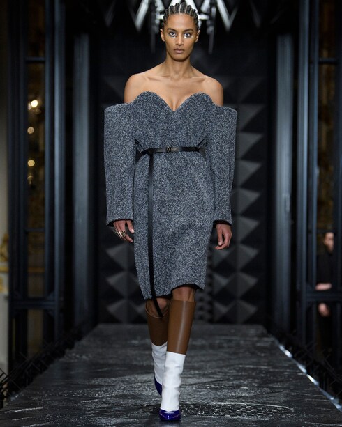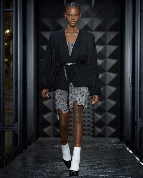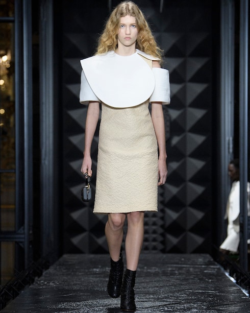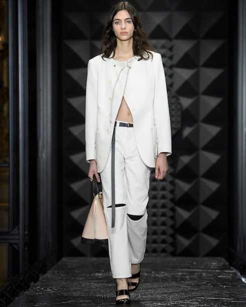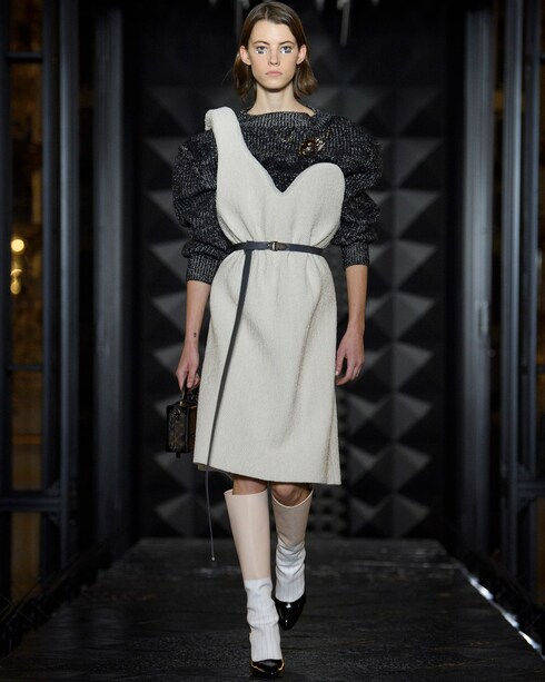 Exploring the sartorial codes of French style, the Fall-Winter 2023 Collection brings to life the enigmatic notion of Parisian chic. Showcasing the art of illusion, boots appear as pumps and intricate embroidery as knits, blurring the line of perception and reality, while emblematic handbags and accessories subtly take on the tricolor of the flag. Full of movement and suppleness, Nicolas Ghesquière introduces a new formal, emblematic of a reimagined French signature.