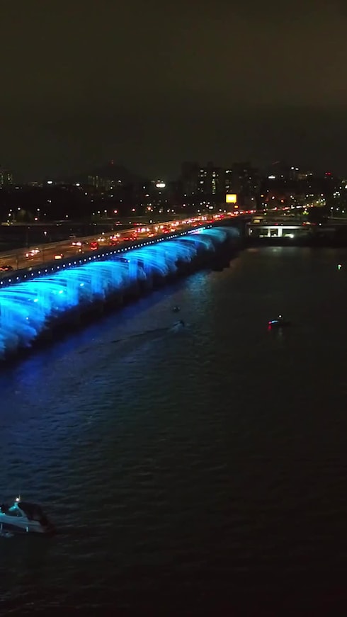 Hwang Dong-Hyuk, director of Squid Game, designed an immersive set on Seoul's iconic Jamsugyo Bridge, whose light projections reflect the incredible energy of a metropolis where past, present, and future coexist in harmony.