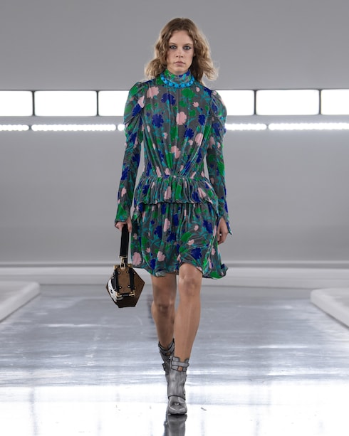 Inciting free expression between color and form, Nicolas Ghesquière unveils a Women's wardrobe full of contrasts, where short confronts long, and an array of ultra-graphic patterns juxtaposes refined materials – in an illustration of the Maison's boundless creativity.