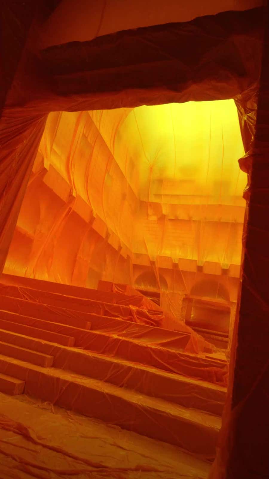 Evoking the spirit of travel, a hot-air balloon lands at 103 avenue des Champs-Élysées, enveloping James Chinlund's scenography in warm summer light. Recycled and recyclable, the installation by Penique Productions drapes the walls in stylized detail. In this suspended moment, like a narrator, French artist Zaho de Sagazan fills the space with her unique voice.