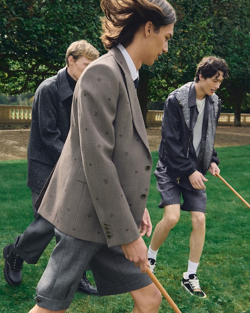 Pharrell Williams unveils a contemporary Louis Vuitton Men's wardrobe nestled in the bucolic English countryside, paying homage to classic country dress codes with a fusion of the dandy aesthetic at the heart of the LVERS vision and Parisian savoir-faire.