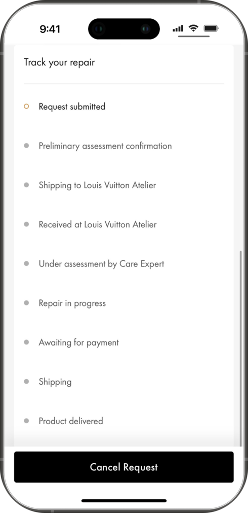 - HOW DO ONLINE REPAIRS WORK?First, your item is assessed by one of our Care Experts, who will send you an estimate for the repair. If you choose to proceed, we will provide a complimentary shipping label for you to send your item to the Louis Vuitton Repair Atelier.