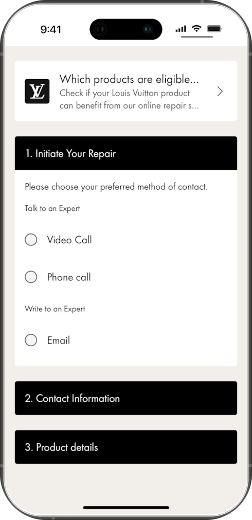 Consult with a Louis Vuitton Care Expert via video call, phone call, or email.