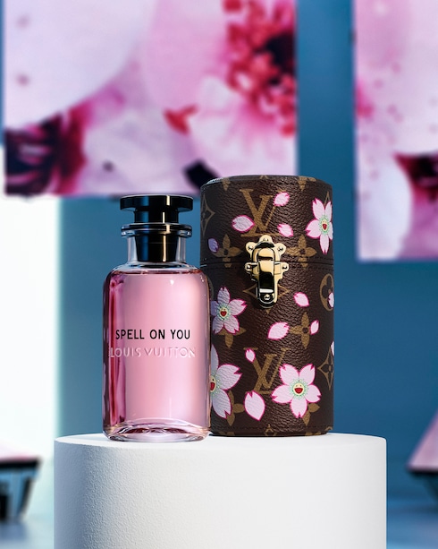 The House's iconic fragrance, Spell On You is reimagined in Chapter Two of the Louis Vuitton x Murakami re-edition collection with a radiant new design, showcasing Takashi Murakami's Cherry Blossom motif. To celebrate the arrival of spring, signature flourishes adorn the bottle and leather travel case — reminiscent of the fragrance's floral olfactory notes.