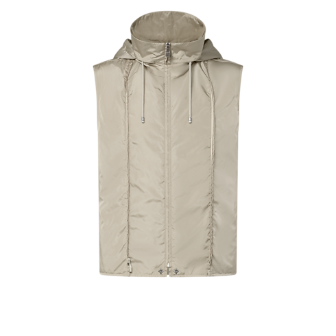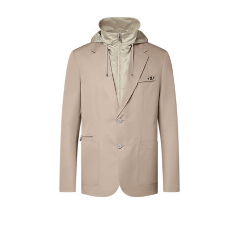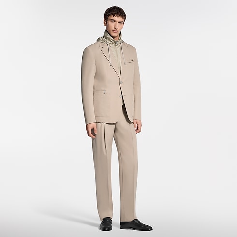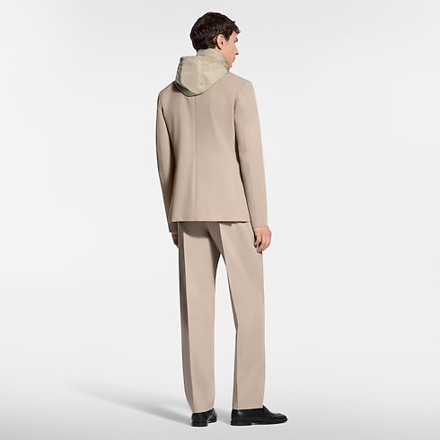 This 3-in-1 single-breasted jacket is tailored from water-repellent wool-cotton twill and is layered over a removable technical gilet with a packable hood. A zippered chest pocket with a metal LV ornament and a zippered ticket pocket add a practical touch. Crafted in timeless beige, it pairs with matching pants for a modern business look.