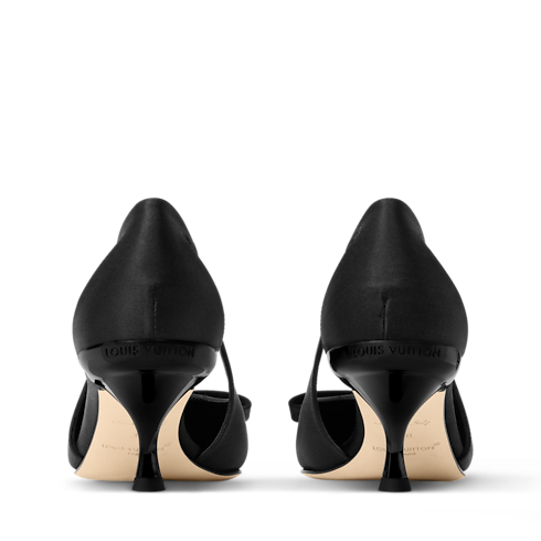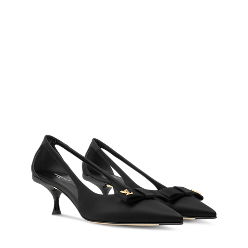 This edition of the 6AM pump comes in smooth satin. The upper is distinguished by its cut-out sides, which subtly reveal the foot, and its flat knot detail on the front, which is signed with a gold-toned LV Initials stud. The kitten heel, made of durable ABS, coordinates with the upper for an elegant finish.