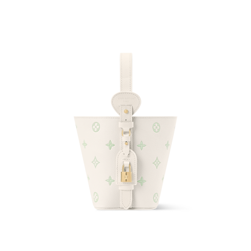 Defined by its playful Milky White and Green color palette, this edition of the All In BB makes a subtle everyday statement. It is crafted from iconic Monogram Empreinte leather with light gold-toned hardware that lends a sleek finish. The decorative name tag and padlock are signatures of the House, paying tribute to archival Louis Vuitton luggage. It can be styled various ways and is sized to fit the essentials.