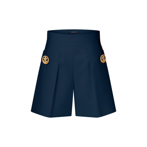 These shorts have a smart, tailored look in elegant wool-silk cady crepe crafted in a clean high-rise shape. Each hip is detailed with a welt pocket trimmed with an oversized golden anchor button from the Nautical collection, while crisp pleats emphasize the structured style. An exposed side zipper adds a contemporary touch to the side.