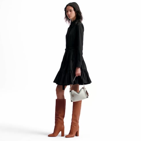 This shirt dress has a crisp, contemporary look in flexible cotton poplin. The fitted top half nods to classic tailoring with a smart Neapolitan collar, a button front and fastened long sleeves, while the skirt introduces airy volume to the silhouette with gathered tiers. A slim D-ring belt with gleaming golden hardware defines the waistline.