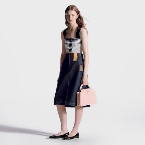 The iconic handbag is reimagined in a new exclusive size, positioned between the Mini and BB models in the bespoke MyCapucines collection, enhanced with an exquisite, jewel-like chain adorned with three customizable charms for a refined, personal touch.