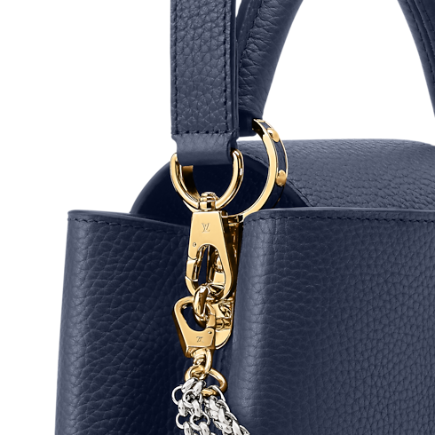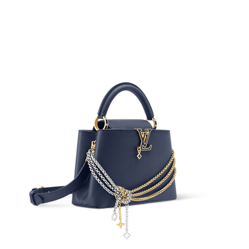 Part of the Why Knot collection, this Capucines BB is updated in a timeless Navy colorway, which beautifully contrasts the mixed-metal hardware. It is made from Taurillon leather and features a decorative chain, as well as tonal LV Initials that pay tribute to the House’s savoir-faire. The double-carry style is capacious enough to store two smartphones - ideal for commuting into the city.