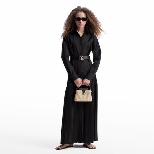 Inspired by the historic Louis Vuitton Picnic Trunk from 1892, this Capucines Mini is the perfect summer handbag. Each one-of-a-kind model is meticulously handwoven from rattan, taking two days to complete. It is trimmed with leather and adorned with the signature LV Initials in an elegant gold-toned finish. Wear it cross-body, over the shoulder or carried by hand.
