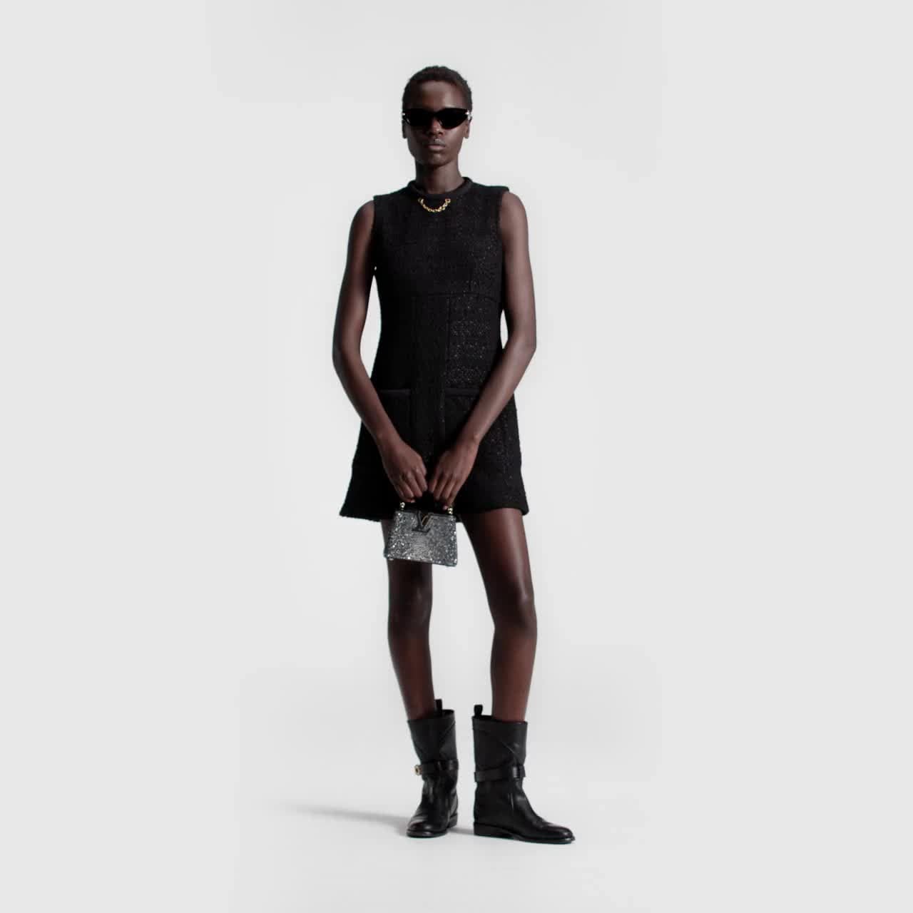 Covered with shimmering crystals, this special edition of the Capucines Nano bag reflects the aquatic theme of the Louis Vuitton's Cruise 2024 fashion show. This exquisitely crafted piece is the perfect compagnon for your most glamorous looks. Like all Capucines bags, it allows a double carry style, with the flap inside or outside.