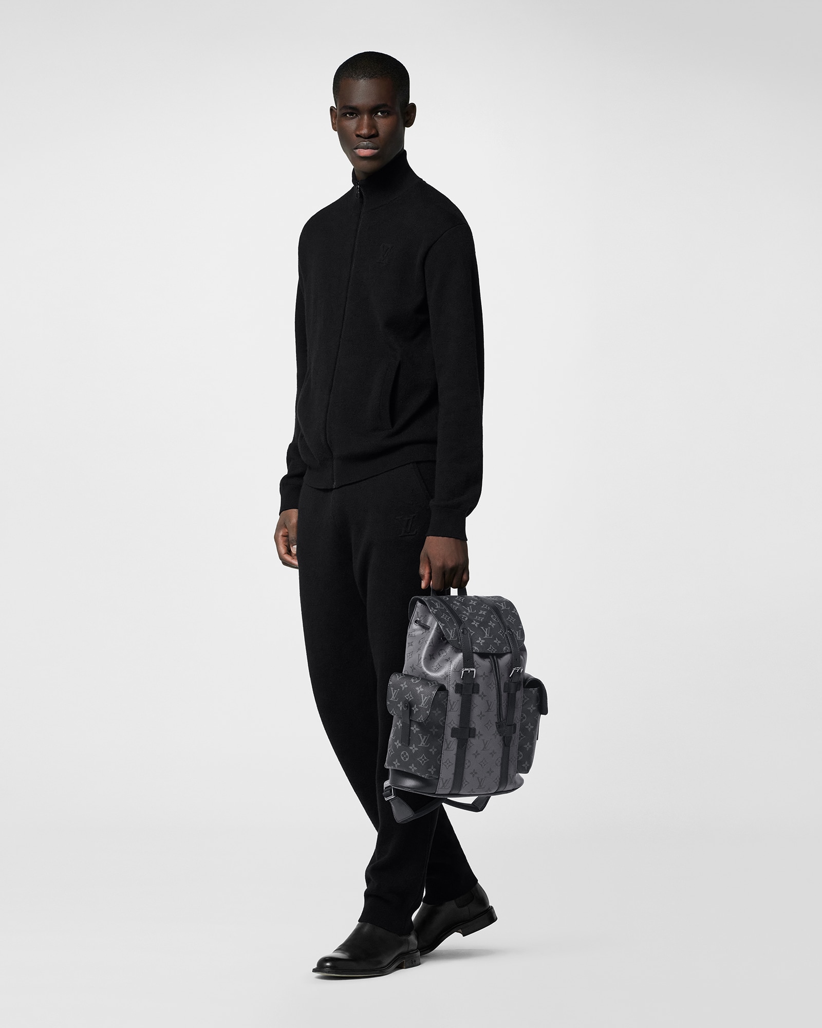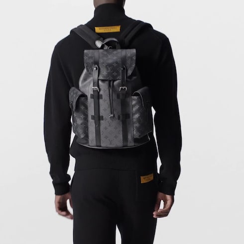 The Christopher PM backpack takes on a striking aspect in Monogram Eclipse Reverse canvas with black-leather trim. Two side pockets enable quick access to essentials while the leather flap with press-stud closure keep belongings safe. The Christopher PM is inspired by the design of the rugged hiking rucksack, rendered here in smaller dimensions.