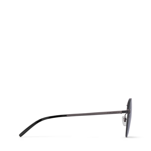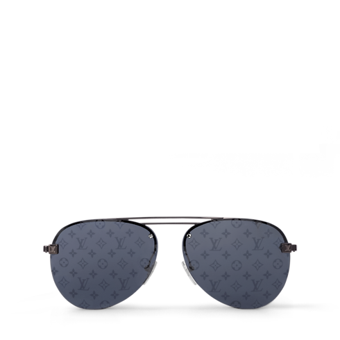 These aviator-style Clockwise sunglasses have a modern look thanks to a rimless frame and a flat front. They feature a double bar at the brow, LV Initials engraved on the end pieces and the Louis Vuitton logo at the temples. The metal elements are contrasted with colored gradient mirror or signature Monogram lenses.