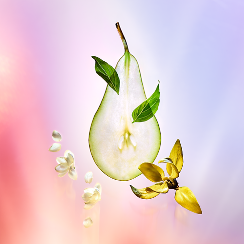 Fresh pear and white flowers waft you away into the whirlwind of life.
