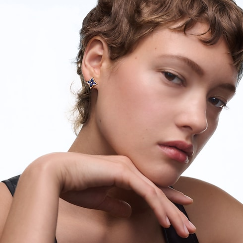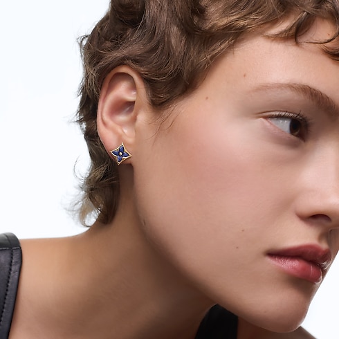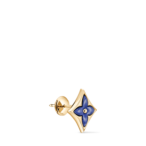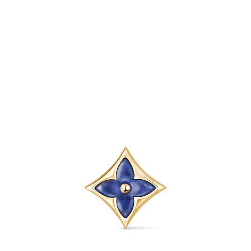 The Color Blossom pieces celebrate the emblematic Monogram Flower, designed in 1896 by Georges-Louis Vuitton, son of the founder. Set into 18-karat (750/1000) yellow gold, this precious earstud features a Star motif carved from sodalite, hand-polished to a high gloss. Months of work were necessary to perfect the stone’s subtle curves and sparkle. This delicate earstud is an invitation to stack, mix or match with other models from the collection.