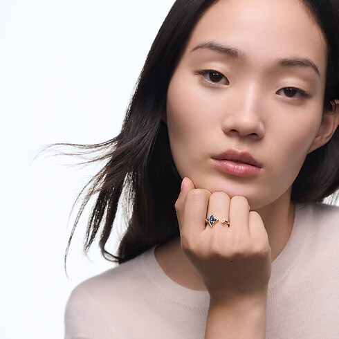 Color Blossom Mini Star Ring, Yellow Gold, Sodalite and Diamond