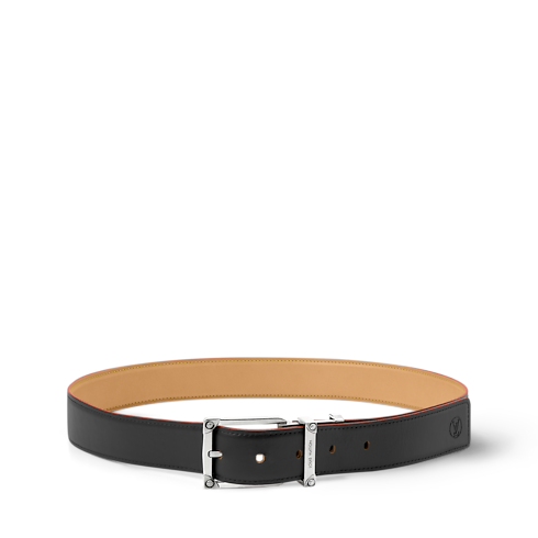 The Corner Pin Trunk 35mm Reversible belt is a simple silhouette inspired by the Louis Vuitton heritage of excellence in craftsmanship. The smooth leather on both sides pairs with a square buckle detailed with metal embellishments meant to mimic the rivets of the House's signature trunks. The versatile style suits casual to more formal wear.