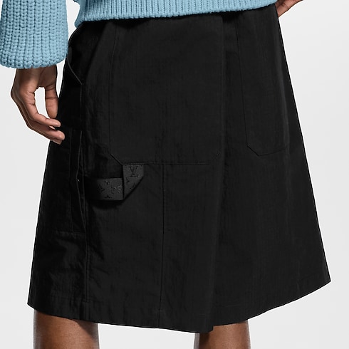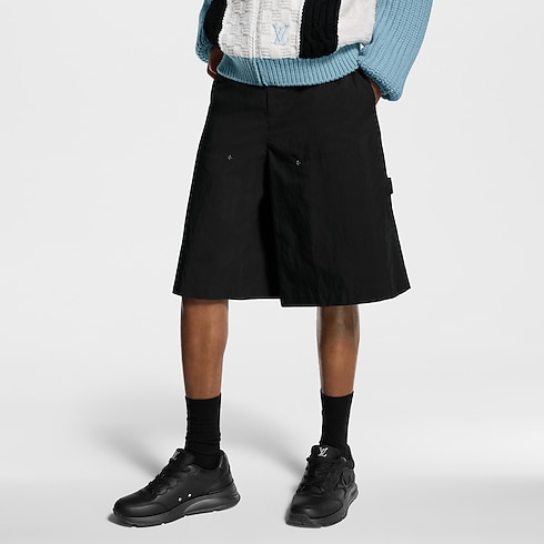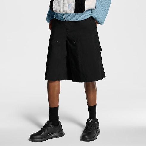 Crafted from technical cotton ripstop, these black cargo shorts have an easy, relaxed silhouette that is light and airy for summer. Utilitarian details include above-the-knee pockets embellished with discreet Monogram Flower rivets and a grosgrain Monogram hammer loop attached to the rear left pocket. Style with other black items from this collection for a modern urban look.