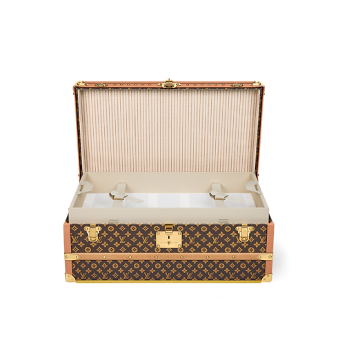 Inspired by a trunk from 1902, the Courrier Cabine 80 is crafted from Monogram Origine canvas, a brand-new material with a distinctly vintage soul. Golden-brass hardware and cowhide-leather trim accent the classic design. A removable tray, nestled in a cotton and leather lining, helps organize the interior. A leather patch bears Louis Vuitton’s 1867 signature.