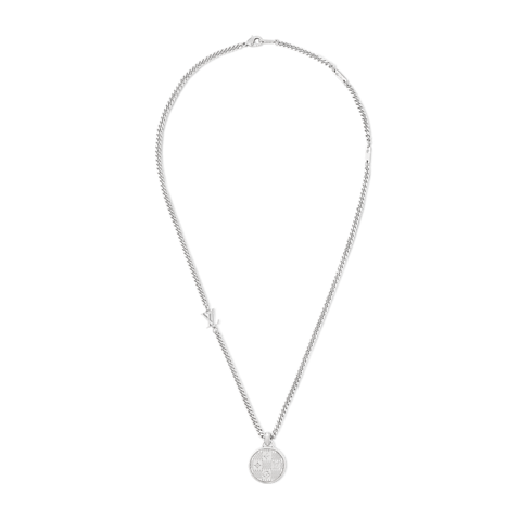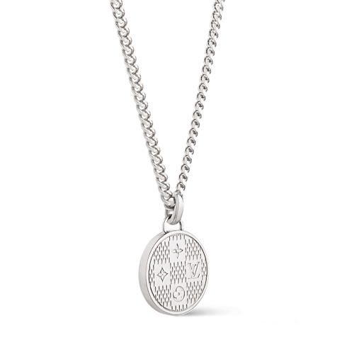 The Damier Staples Pendant showcases Pharrell Williams's new pattern, a creative blend of the Damier Héritage and House Monogram. The charm itself is engraved with this motif, and the necklace's long chain features the LV Initials. The necklace is adjustable to ensure a personalized length.