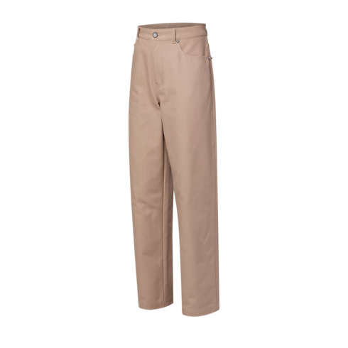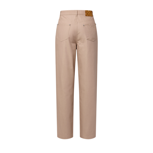 These denim workwear pants are crafted from cotton canvas in elegant sand tones that are easy to mix and match. They have an easy relaxed fit distinguished with embroidered LV letters on the back right pocket and a Damier nubuck jacqueron. Paired with a matching jacket they make a contemporary workwear set.