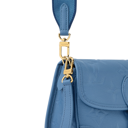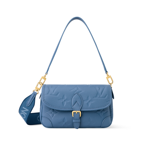 This sleek Diane handbag is updated for the season in a Blue Jean palette, which complements day and evening looks. It is crafted from signature Monogram Empreinte leather with a contrasting textile strap that can be removed if desired. The elegant design is adorned with gold-toned hardware and opens to reveal a zipped pocket to keep smaller items secure.