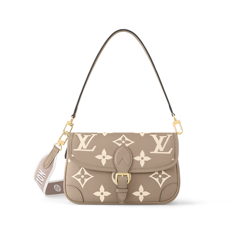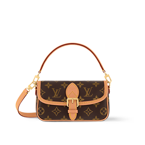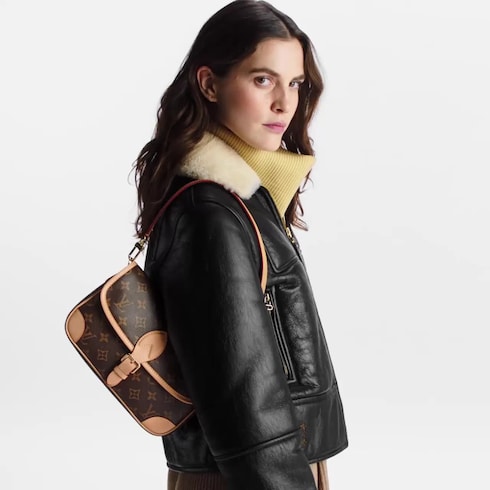 The Diane satchel in Monogram canvas revisits a classic model from the 90s, combining such vintage details as leather corners and an archival-inspired buckle with the modern functionality of smart pockets and a well-organized interior. The exclusive wide jacquard strap reverses from a bold Louis Vuitton signature to a subtle Monogram Flower motif.