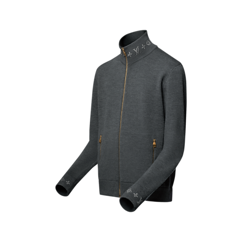 Combining comfort with elegance, this dark grey organic wool blouson is crafted in a double-face knit with a soft cotton interior. The pared-down silhouette is accented with jacquard Monogram details on the collar and cuffs, which remain visible when layered under a coat or jacket. Matching pants make a smart travel set.