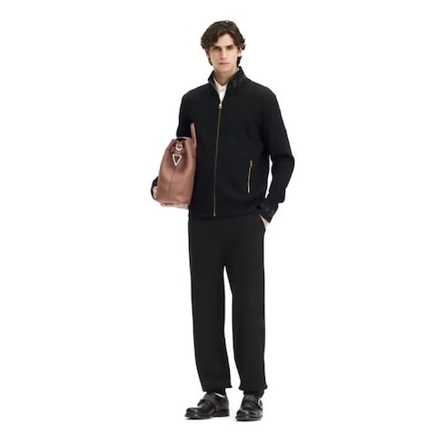 Combining comfort and elegance, these black wool-blend pants are crafted in a sophisticated double-face knit with a soft cotton interior. Their minimalist silhouette, which is distinguished with jacquard Monogram signatures on the cuffs, makes a smart travel set when paired with a matching blouson.
