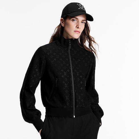 Subtle detailing reimagines a classic zip-up jacket as a chic essential. Crafted from the House’s iconic technical jersey in a seasonal embossed Monogram that adds a sleek allover signature. The texture of the motif is complemented by coated technical zippers. Ribbing adds volume to the hemline and sleeves to complete the sophisticated, sporty style.
