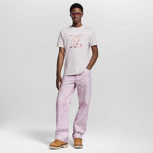 This soft white cotton T-shirt has a summery vibe. Inspired by the Fall-Winter 2025 show’s collaboration between Pharrell and Nigo, it references the latter’s native Japan with a delicate LV Blossom motif recalling the iconic sakura cherry trees. Meticulous hand-embroidery with pink-toned ribbons resembling flowers brings a sophisticated accent to this casual piece.