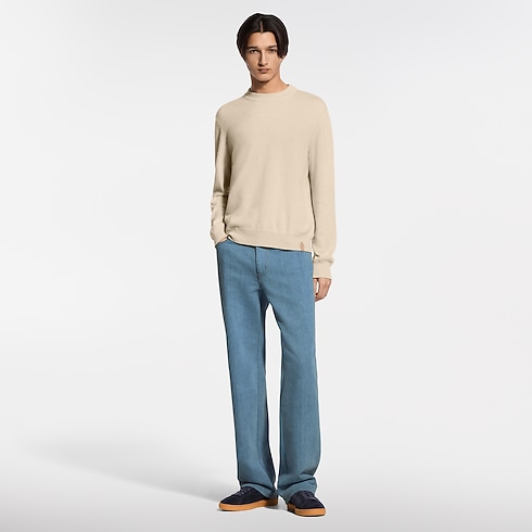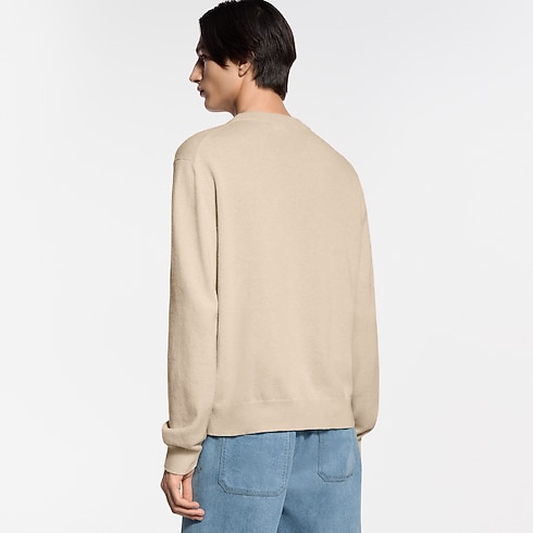 This pale beige crewneck is crafted from pure, certified cashmere, combining timeless elegance with unparalleled comfort. The fine knit is exceptionally soft and warm, making it ideal for midseason layering. It is signed with a VVN leather tab on the bottom left hem in homage to the House’s heritage trunks.