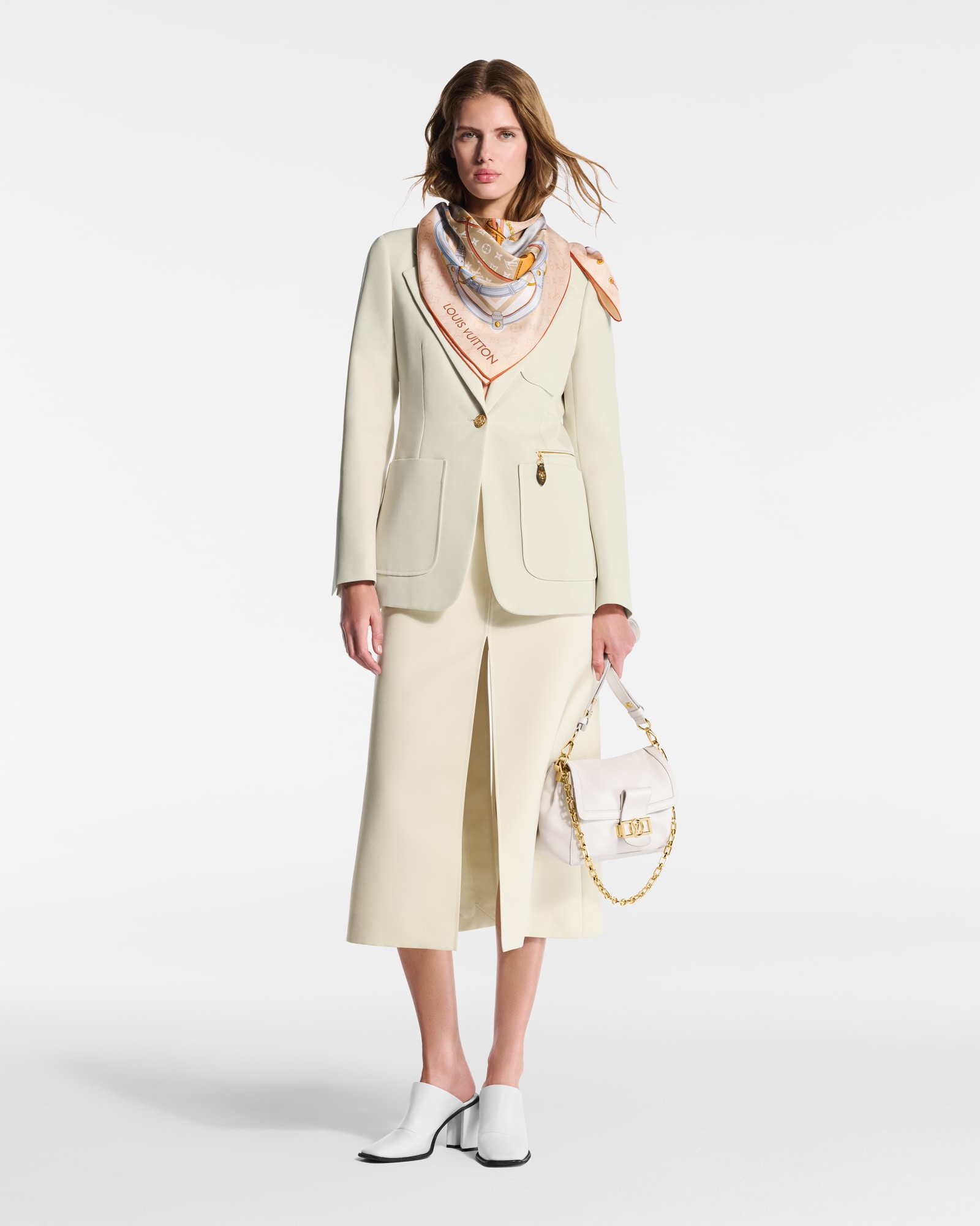 The elegant new Flower And Straps square makes a bold but refined signature statement. Screen-printed on sumptuous silk, its fresh modern design is an upbeat composition of beloved Louis Vuitton icons, featuring a Monogram Flower plus straps, padlocks and luggage tags. The background incorporates the Monogram and Damier patterns for an additional House touch.
