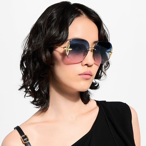 With their subtle rimless design and exceptional craftsmanship, the Flower Edge Metal Square sunglasses celebrate the beauty of the Monogram Flower. Their faceted square lenses are held in place by finely crafted star-shaped flowers for a sophisticated signature. A discreet LV Initials motif on the gold-toned metal temples adds an extra House touch to these flattering, ultra-feminine sunglasses.