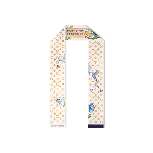 Crafted in sumptuous silk, the Fontaines Parfumées bandeau is a veritable celebration of elegance and creativity. Its intricate artistic pattern features delicate flowers in soft colors, mixed with images evoking a vintage perfume extractor. An easy-to-wear, ultra-feminine accessory, and an enchanting ode to the pleasures of the senses.