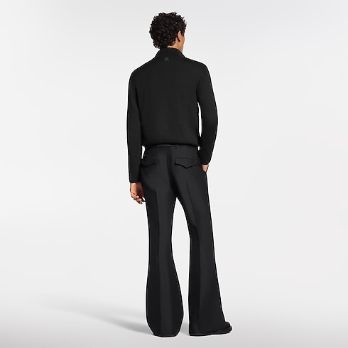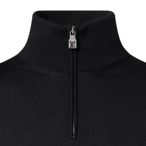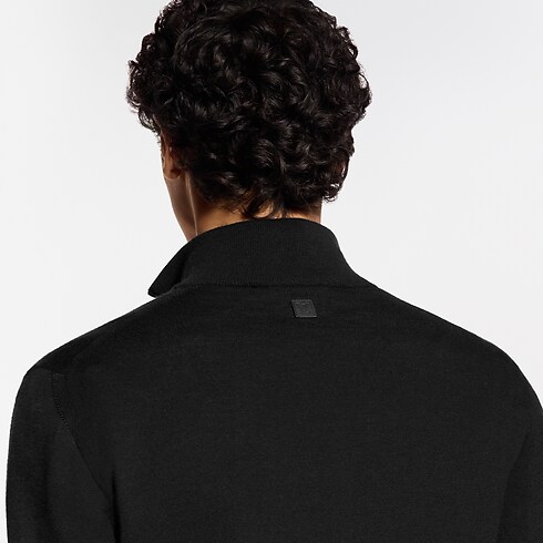This chic black half-zip sweater is crafted from a luxurious blend of wool, silk and cashmere, offering a soft touch for optimum comfort. The fine, summery knit features signature embroidery on the left hem and a leather LV patch on the back. This timeless piece can be worn open over a shirt or zippered like a turtleneck.