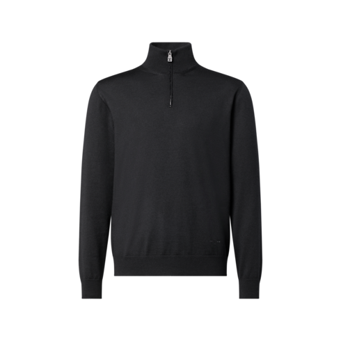 This chic black half-zip sweater is crafted from a luxurious blend of wool, silk and cashmere, offering a soft touch for optimum comfort. The fine, summery knit features signature embroidery on the left hem and a leather LV patch on the back. This timeless piece can be worn open over a shirt or zippered like a turtleneck.