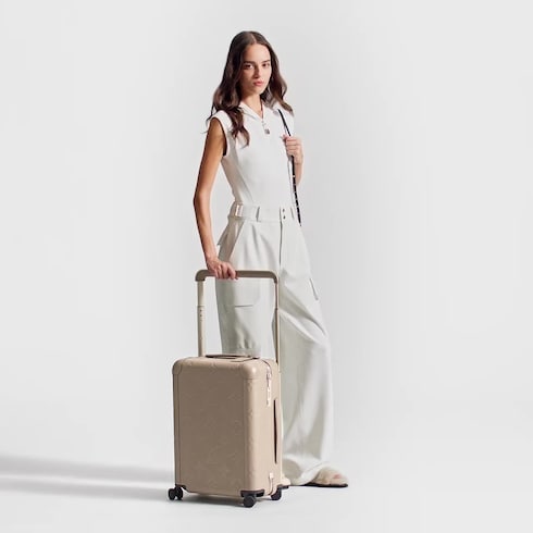 The Horizon trolley bag now comes in supple, sumptuous leather in a cool shade of greige, embossed with an outsized version of Louis Vuitton’s iconic Monogram pattern. Compact enough to use as a carry-on, it’s a breeze to roll with its extra-wide cane handle and four double wheels. A practical, feminine travel bag with a subtle signature look.