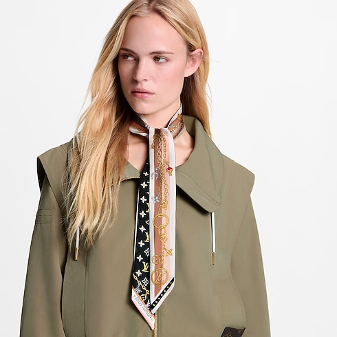 The elegant K Charms bandeau captures the spirit of Louis Vuitton in an enchanting, ultra-feminine design. Printed on pure silk, its pattern features a chain holding an array of symbolic charms evoking the Monogram signature and the House’s travel heritage. Ideal for everyday wear, this sophisticated bandeau adds a subtle touch of chic to any outfit.